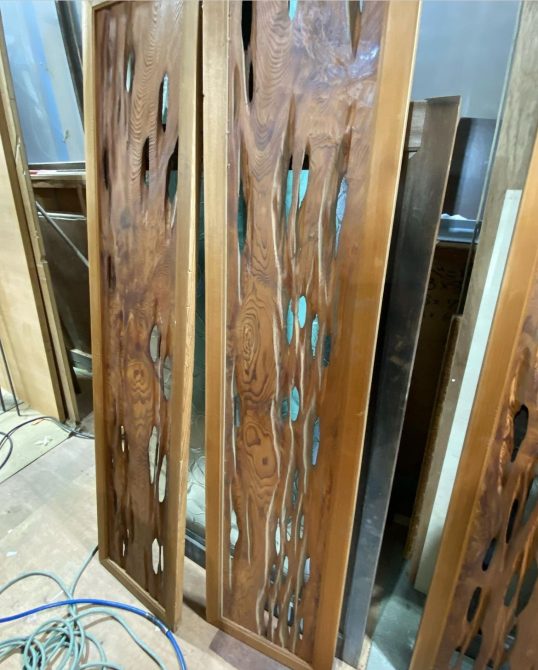 古い建具や 欄間を使って TVボードを造りました 幼い頃から 毎日触れていた建具や 毎日目にしていた欄間を 上手に再利用 想いを繋ぐ家具ができました